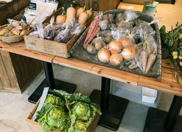 パンが並ぶカウンターの横では自社農園で採れた野菜も販売し、土日のどちらかではマルシェを開催します(日程はインスタグラムでお知らせ)。『カンパーニュ』のように食事に合うパンと一緒に野菜も購入すれば、献立が一気に考えられそうですね。