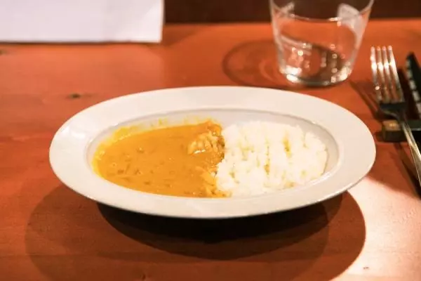 〆にオススメなのが『魚介ダシの具なしカレー』。ひとりでもぺろりと食べられてしまう小ぶりサイズです。具なしとはいえ、魚介の出汁に加え、ニンジンやセロリなどの野菜を煮込んで旨みが溶けだしたルーは、コクを感じられながらも重たくなく、サラリとした口当たり。