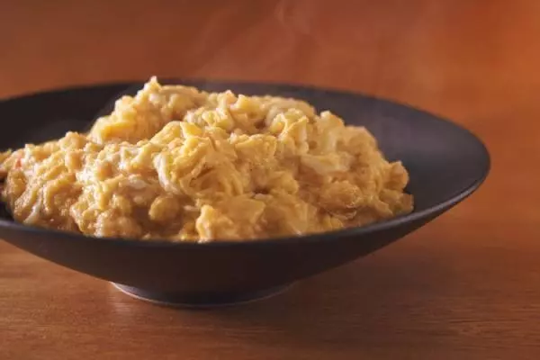 一方、『炙りしめ鯖』や『毛蟹のかに玉』など【エンジン】の名物料理も抜かりなく踏襲。ことに『毛蟹のかに玉』は【take】でも評判のメニューで、毛蟹がたっぷり入るふわふわの蟹玉は、餡を上からかけない【エンジン】独自のスタイルだ。阿部シェフ曰く「毛蟹は、お店で丸ごと蒸したものを、手でほぐして使っています。