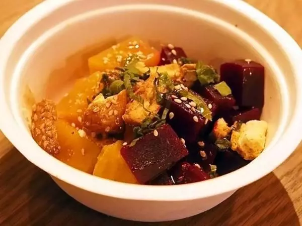 『SWEET AND SOUR BEETS』700円(税込)は、酢漬けにしたビーツの酸味とカシューナッツのクリームにハラペーニョのパンチのある辛味を混ぜ合わせて食べる