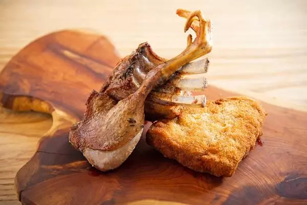 幻の豚肉として大人気の「TOKYO X」。黒豚をはじめ、他の品種との良いところを取り込み改良した品種で、きめが細かく、上品な香りとさっぱりとした脂肪、ほどよい柔らかさが特長。これを厚くカットしてミラノ風カツレツに。