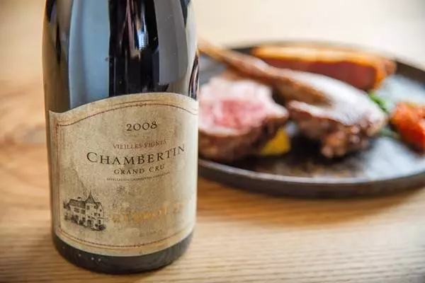 料理と合わせて楽しみたいワインはソムリエの岡田洋明さんが、約100種類をラインアップ。例えば鴨肉のローストには「シャンベルタン グランクリュ」がおすすめ。