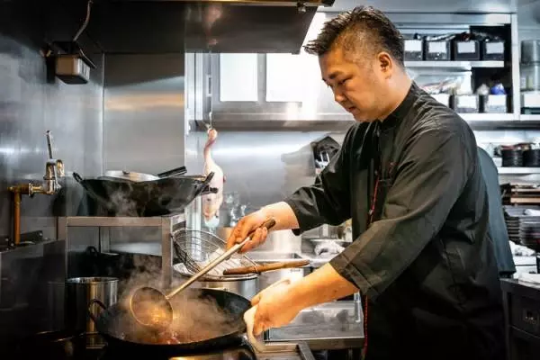 店主の田村亮介シェフ。「西麻布界隈で移転先を探していたのですが、縁あってこの場所に無事開店することができました。驚きと楽しさがつまった中華のコースを提供していきたい」