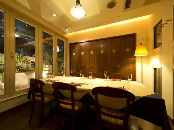 赤坂見附駅から徒歩2分、ビルの7階という立地でありながら、お庭を眺めながら上質な時が過ごせるイタリアン・フレンチの店【月の市場】。店内はダークブラウンを基調とした落ち着いた雰囲気で、お庭の見える7つの完全個室やテーブル席のほか、カウンター席、20~32名で利用できるパーティールームも完備され大人数の利用も可能です。