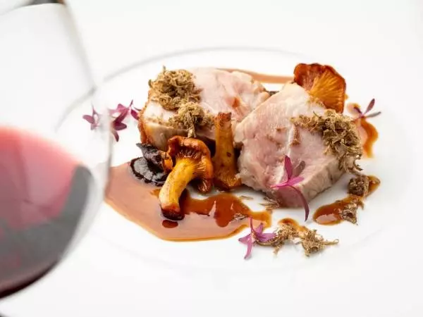素材を活かした季節を感じるフランス料理をコースやアラカルトで楽しめ、ワインとの最高のマリアージュが堪能できます。『安曇野放牧豚のロースト そのジューと天然キノコ添え』は、自然の中でストレスなく育った安曇野放牧豚に、低温でじっくり火を入れ、ジューシーで旨味あふれる仕上がりです。
