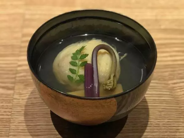 蛤のギュッとつまった旨味とコリッとした歯ごたえが感じられ、それをふわふわのしんじょうが包む。かつおと昆布が効いた出汁は、身体にすーっと入ってくる優しい味わい……日本に生まれてよかった!