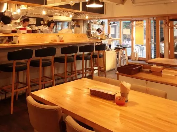 手づくりのあたたかみがある、オシャレなカウンターとテーブル席