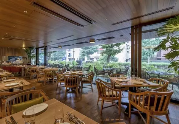 品川駅から徒歩3分ほど、豊かな緑に囲まれた空間で、モダンなビストロ料理を楽しめる【ガーデンレストラン オールデイダイニング】。