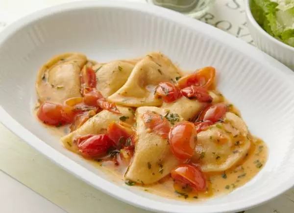 ⑦ ⑤のラビオリを茹で、⑥のソースをかけて完成