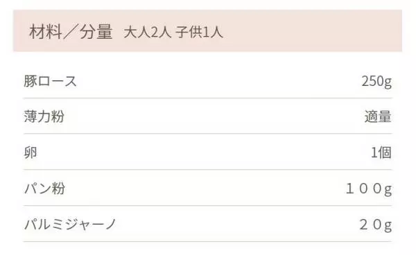 ③ ①の豚肉を叩いて、5mm程の厚さにし、薄力粉→卵→②のパン粉の順でつける