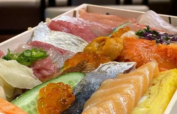 寿司と割烹料理どちらも入ったお得なセットがテイクアウトで楽しめます。中でも注目は、西京焼き、煮物、玉子焼き、南蛮漬、フライ、ポテトサラダ、ちらし寿司がセットになった『ランチお弁当』! こんなに入って800円はとてもお得です。夜は1,000円で提供中。