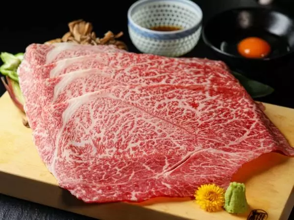 テーブル席限定という『焼きしゃぶ』は、繊細なサシが入ったスライスを甘辛いタレにつけ、玉子にくぐらせて味わうすき焼風か、あっさりとポン酢で味わうかを選べるメニュー。