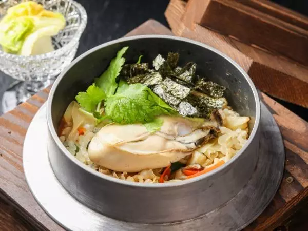 〆には、再び貝に戻って貝の釜めし『貝釜』を。ふっくらと蒸しあがった貝と、そのだしが溶け込んだご飯はお腹がいっぱいでも箸が止まらなくなります。この日は、先ほどの冷蔵ケースにあった大ぶりのカキがドーン!と乗ってなんとも贅沢。蓋を開けた時の香りもたまりません。提供に少し時間がかかるため、ぜひ早めにオーダーを。