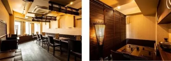 テーブルをつなげると大人数でも利用でき、すだれを下すと左写真のような半個室になります