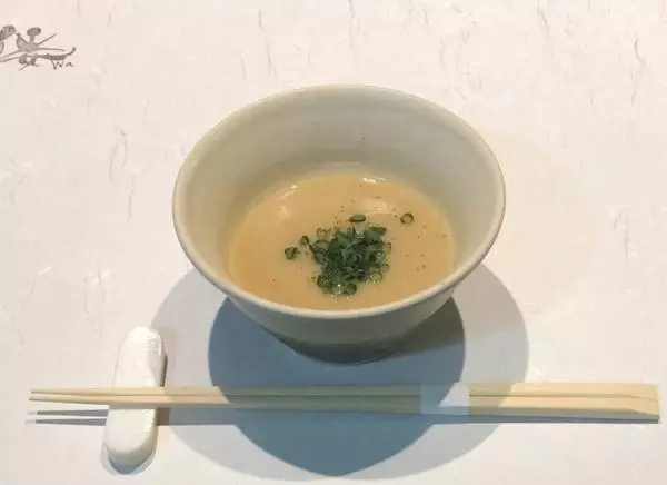 【倭】のコース料理はとにかくヘルシーで、「翌日は体が軽い」「胃もたれしない」と評判です。中でも人気の、野菜だけで構成された『お野菜のフルコース(全6品)』をご紹介します!1品目『季節野菜のスープ』