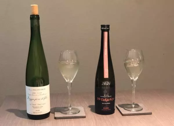 この日合わせたのは、清酒スパークリング『ヌメロアン2019 サケ エロティック』と純米吟醸『高千代』
