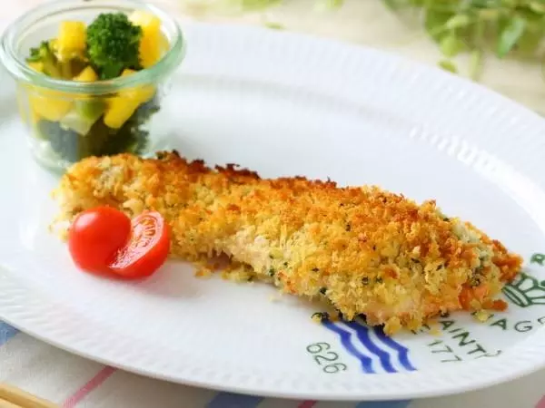 オーブンもしくはトースターでサクサクに仕上がる『サーモンのマヨパン粉焼き』