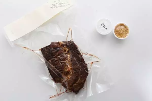 熟成肉の炭火焼に合わせる父母ヶ浜の天然塩と粒マスタードも