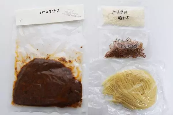 生パスタ、ボロネーゼソース、粉チーズ、トッピングがセット