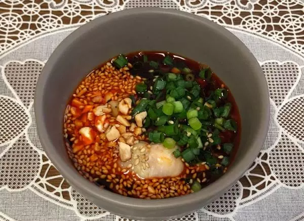 餃子のあとは山椒麺を加えます。たれと山椒のほんのりとした辛味が混ざり合います。好みによって温かい麺でも冷たい麺でもどちらでも楽しめます