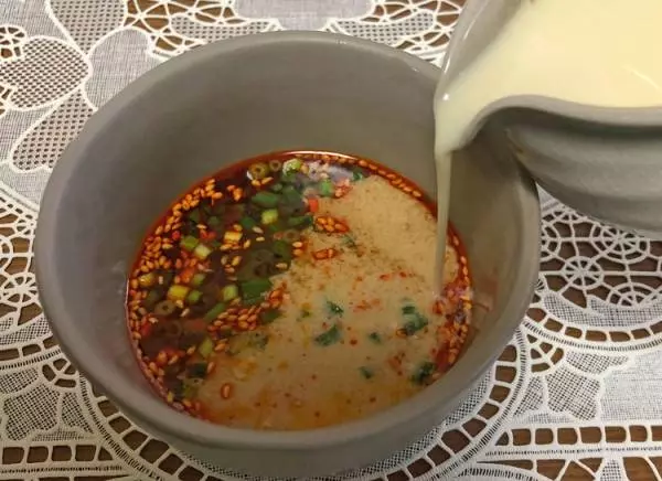 山椒麺を食べ終わったら、【テクストゥーラ】では最後に豆乳を入れるので、うちでもあたためて味を調整した豆乳をイン!味に丸みが生まれ、すっと飲み干してしまいました