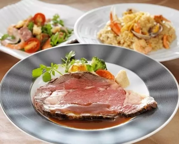 おすすめのセットメニューは、サラダマルシェ、ローストビーフ西洋わさび添え、海の幸のピラフ、コーヒーまたは紅茶のセット『ローストビーフセット』です。