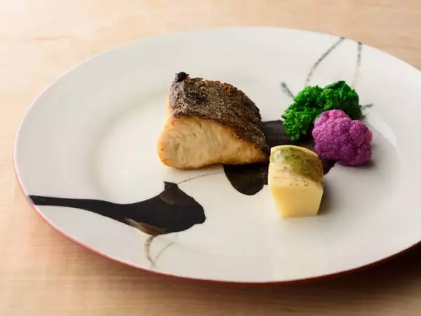 炭火で香ばしく焼き上げた旬の魚に地元の野菜を添え、既成概念にとらわれず美しく盛りつけた『焼き物』