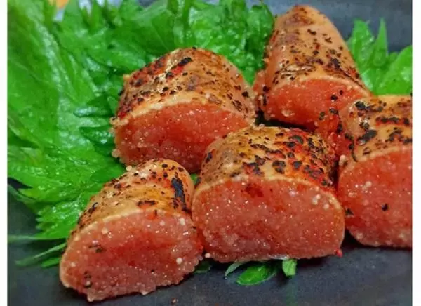 噛んだ瞬間に口に広がる香ばしさと明太子の風味がクセになる『燻製明太子の炙り』574円(税抜)