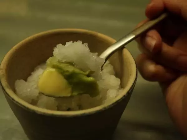 質の高いタガメを贅沢に使ったかき氷。下にはアボカドとレモン