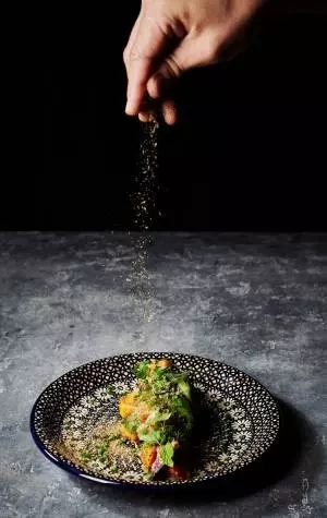ビーガンレシピ本でも話題を集める「The Burn」の米澤文雄さんによるベジタリアン料理専門店。イスラエルをはじめとする、中東のインスピレーションを織り交ぜた料理に日本酒とナチュラルワインのペアリング。