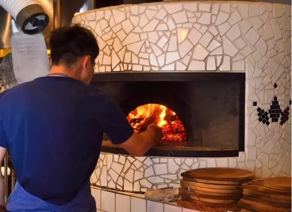 手づくり生地を使ったピザを店内の窯で焼く
