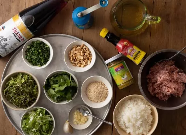 しかし、レシピを紐解いてみると、シンプルだけれど、実は丁寧な下ごしらえがあってこその料理だとわかる。ピーナツを乾いりして香ばしさを引き出し、水加減を少なくし、少しかために炊いたごはんにはシーズニングソース(ベトナムの醤油)で軽く味をつけておくことなど。「でも、それだけですよ。野菜はお好みのものでOK。