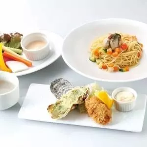 『オイスターセット』1,500円は、パスタやグラタン、クリームリゾット、ガンボライスなどから好きなメイン料理が選べます