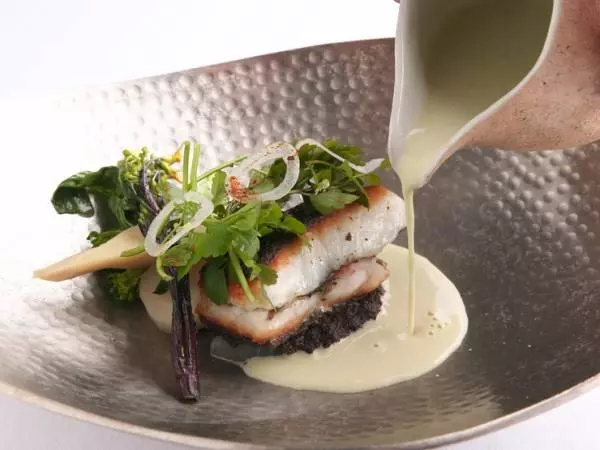 あえてスペシャリテを持たず、四季折々に新しい料理を考案。ランチは1種・ディナーは2種のコースを用意し、約1カ月半ごとに刷新する。一つ一つの料理は、主食材に多彩な素材を組み合わせて、緻密に、そして複雑に構成。口に含むとそれらが混然一体となり、季節の味を物語る。アミューズからメイン、デザートにいたるまで、驚きと笑顔、幸せな余韻がきれいに響き合い、その独創的な世界観が、県内外の人々を惹きつけている。