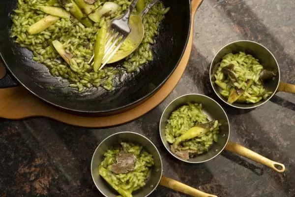 とある日のメニュー「アスパラガスとトリュフのリゾット」。帝国ホテル東京総料理長・杉本雄氏監修のメニュー