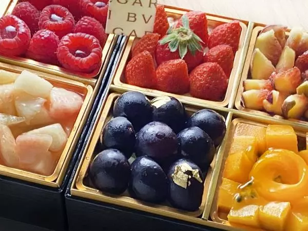 季節のみずみずしいフルーツ八種が様々なデザートとなって詰められている