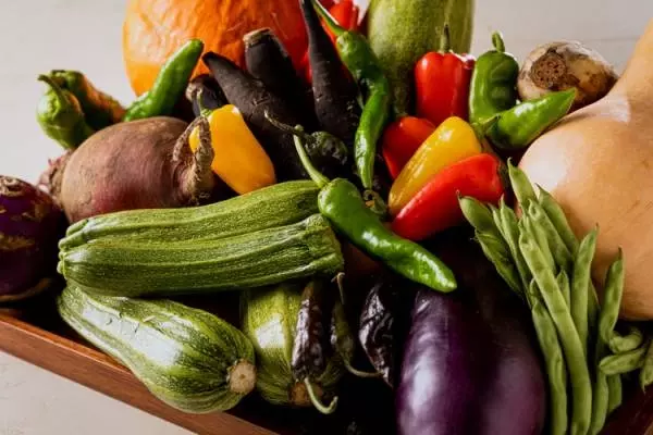 能登の「高農園」から取り寄せている野菜の数々。有機農法で栽培された野菜は、能登島の赤土に育まれ、ミネラルいっぱいに育つ。