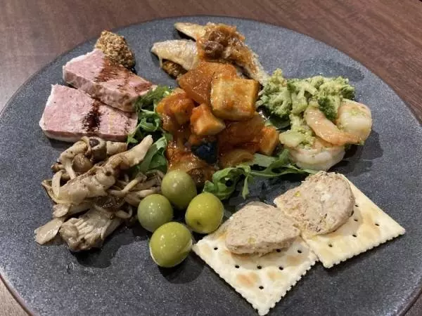 2020年10月30日 00:00まず初めにオススメしたいのは、『前菜盛り合わせ』。日によって内容は異なりますが、この日は『国産野菜のカポナータ』や『5種のキノコのマリネ』、『にしんのサオール』、『無花果と胡桃・クリームチーズのパテ』など、計7種類のメニューが勢ぞろい。どの料理も各500円ほどで注文できる料理がひとつに合わさっているため、かなりお得でワインに合わせて様々な味が楽しめます。