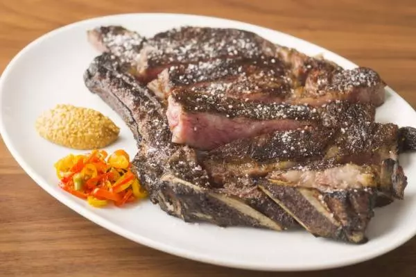 「人間味あふれる料理を」という思いから、熟成肉の炭火焼を筆頭に本能に響く旨いグリル料理を提供。『あがの姫牛骨付きドライエイジングビーフ炭火焼』は、新潟の銘柄牛の骨付きロースを70~80日ほど熟成し、炭火グリルで直火を出しながら豪快に焼き上げます。