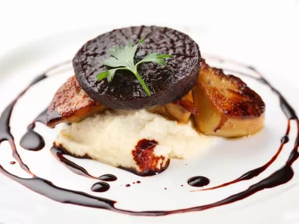 大根の甘煮にアレンジとして加えたセロリラブのピューレが絶妙の相性な『フォアグラのソテーポルト酒風味』