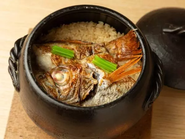 農家直送の「五郎兵衛米」の単一米を使用。『のど黒炭火焼き土鍋ご飯』 4,000円(一合)
