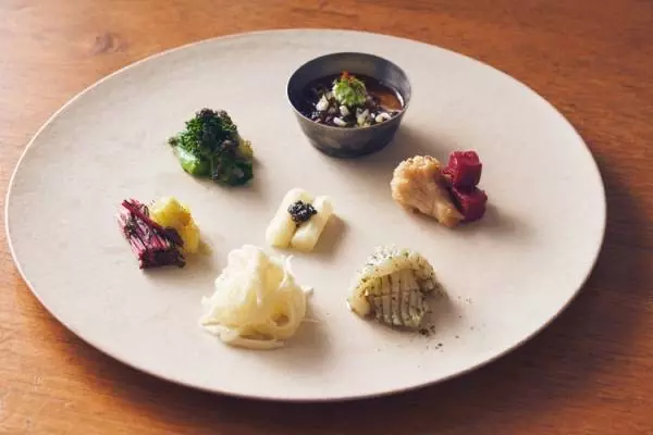 ついで供された『前菜-8種盛り-』なんて、見た目はまるで日本料理の八寸だ。食べると素材の持ち味を活かした味わいで……あれ、花山椒にレモングラス、クミン、胡椒、マスタード……8種の料理は、それぞれにメインで使われているスパイスが異なっている。