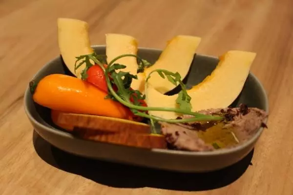 このお店ではコースのはじめに登場する『Dōngxī ナッツ』や『農園ディップ』などの小皿メニューの味付けを選べるのです。東は辛くスパイシーな味わい、西はフムスで甘みのある味わいです。