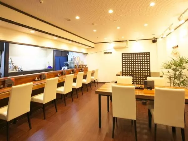 店内は白を基調としたシンプルで落ち着いた雰囲気。テーブル席のほかにカウンター席も設けられており、人数やシチュエーションを選ばずに利用可能です。