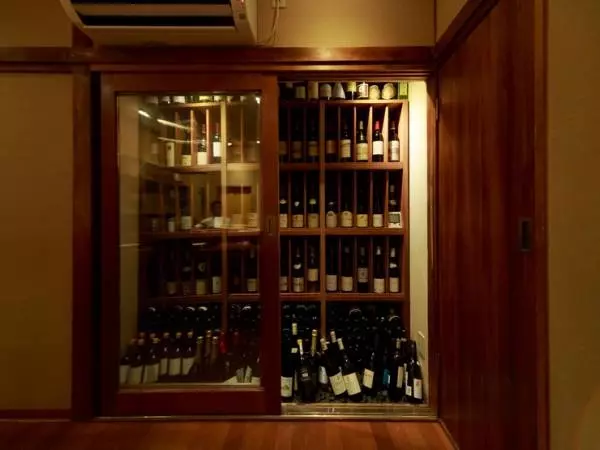 大きなワインセラーにびっしりと揃った世界各国の銘柄ワイン