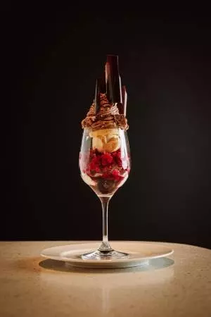 チェリーコンポートやラズベリーグラニテなど甘みと酸味が絶妙に組み合わせられた、虎ノ門限定の『チョコパフェ』1,590(税込)