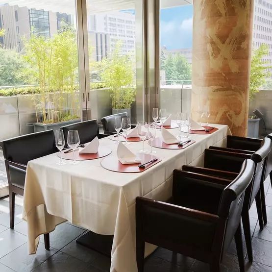 表参道駅から徒歩4分、古き良き技術と現代の感覚が織りなす“伝統×革新”の日本料理を提案する【青山星のなる木】。細部にまでこだわったシックな空間は、晴れやかな席にも最適です。ゴージャスな内装の個室が8室と、季節を感じられるテラス席があり、大都会にいながらも隠れ家のような落ち着きを感じられます。