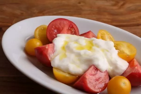 主役のトマトは「FARM YARD いしの」の水耕栽培でつくられた、甘みも酸味も皮もしっかりしたものを厳選して使用。その上に生クリームと合わせたブッラータチーズを乗せ、香りの良いオリーブオイルで仕上げています。食材を最大限に活かしたシンプルな料理からは、生産者をリスペクトするシェフの姿勢が感じられます。