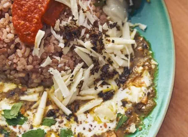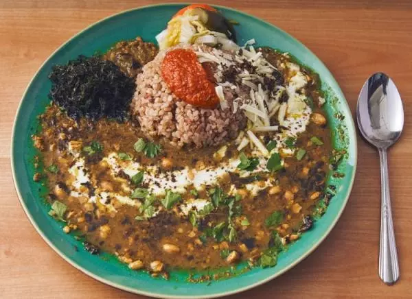 最初はそれぞれの箇所の味を楽しみ、最後に全体を混ぜて食べると、スパイスの辛味の中にまろやかさが生まれます