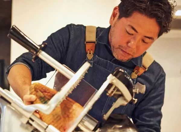 ベルケル社のスライサーで生ハムを極薄にスライス